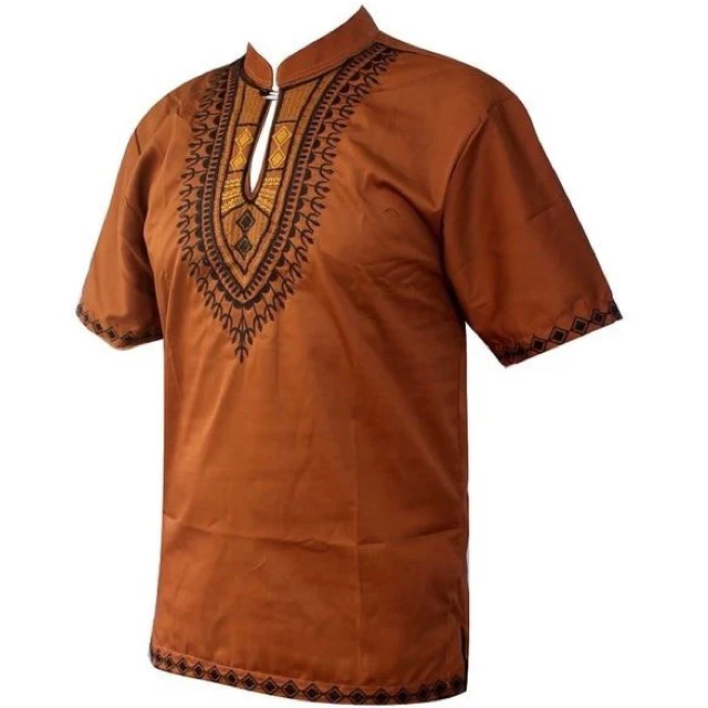 CETTE CHEMISE AFRICAINE À MANCHES COURTES EST UNE TENUE TRADITIONNELLE QUI SORT DE L'ORDINAIRE. AVEC SES MOTIFS BRODÉS, ELLE T'OFFRIRA UN STYLE RAVISSANT.